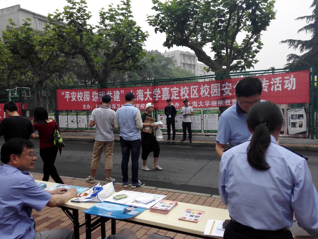 6月16日,嘉定校区开展以“平安校园 你我共建”为主题的校园安全宣传活动。此次宣传活动由保卫处(嘉定校区)主办,继续教育学院协办。宣传活动以横幅、展板、传单及现场咨询等形式展开,保卫处副处长何金伟率一众保卫干部组织开展宣传活动,嘉定公安分局高校派出所民警谢佩君受邀参加。