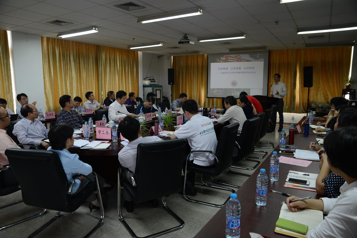 副校长丛玉豪和来自评建办、教务处、考评办、校办、人事处、学工办、招毕办、文科处、财务处等职能部门的负责人,为文学院的迎评工作提出了中肯而有针对性的建议和意见,帮助文学院共同将此次审核评估工作准备得更加充分和有效。