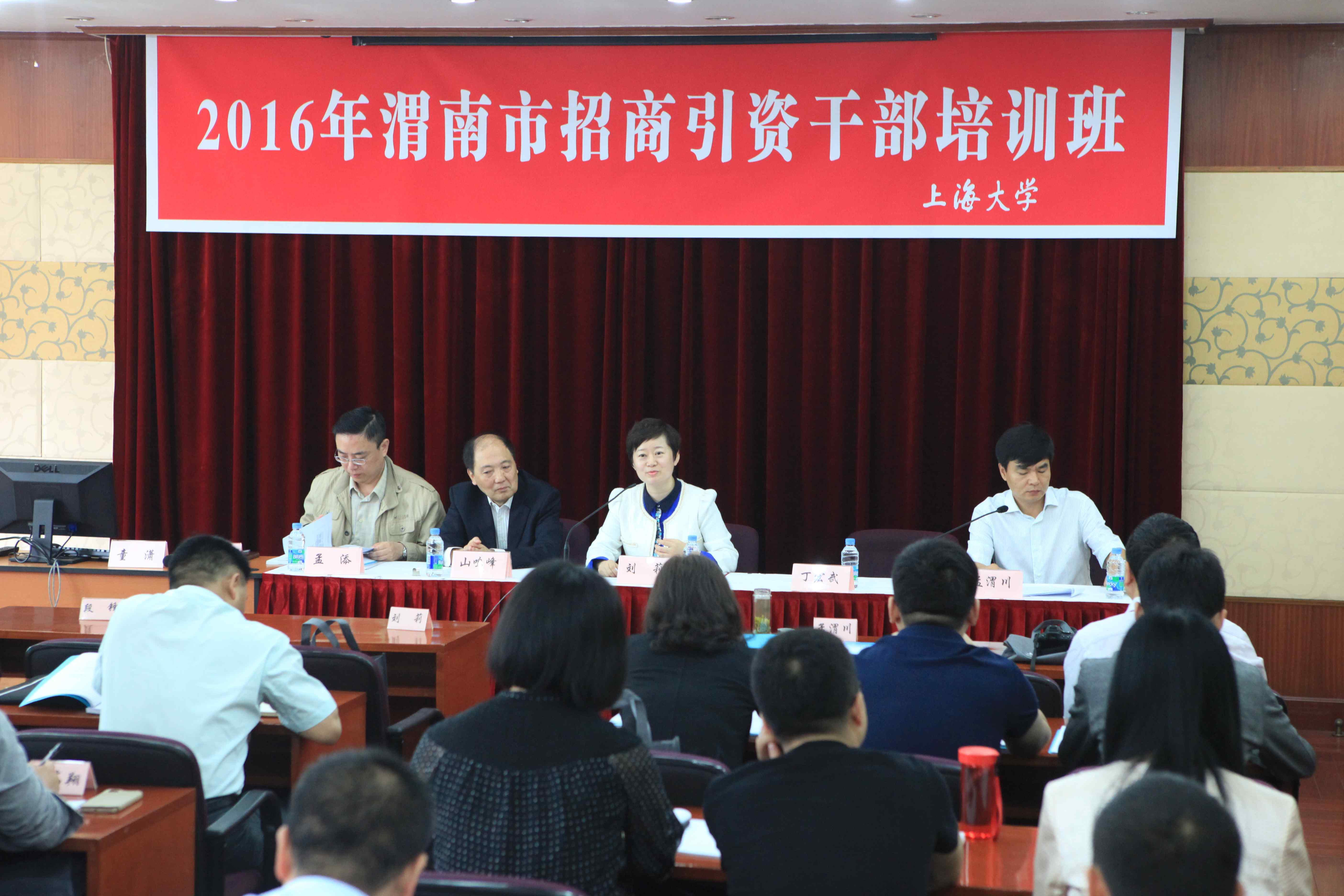 2016年5月24日上午8:30,陕西省渭南市招商引资干部培训班在金沙集团1862cc成色延长校区科技楼817室举行。渭南市对外经济技术合作局副局长孟渭川主持开班仪式,渭南市对外经济技术合作局局长刘莉、渭南市驻沪办主任丁宏武、上海经济管理中心主任山鸣峰、副主任孟添等领导出席开班仪式。