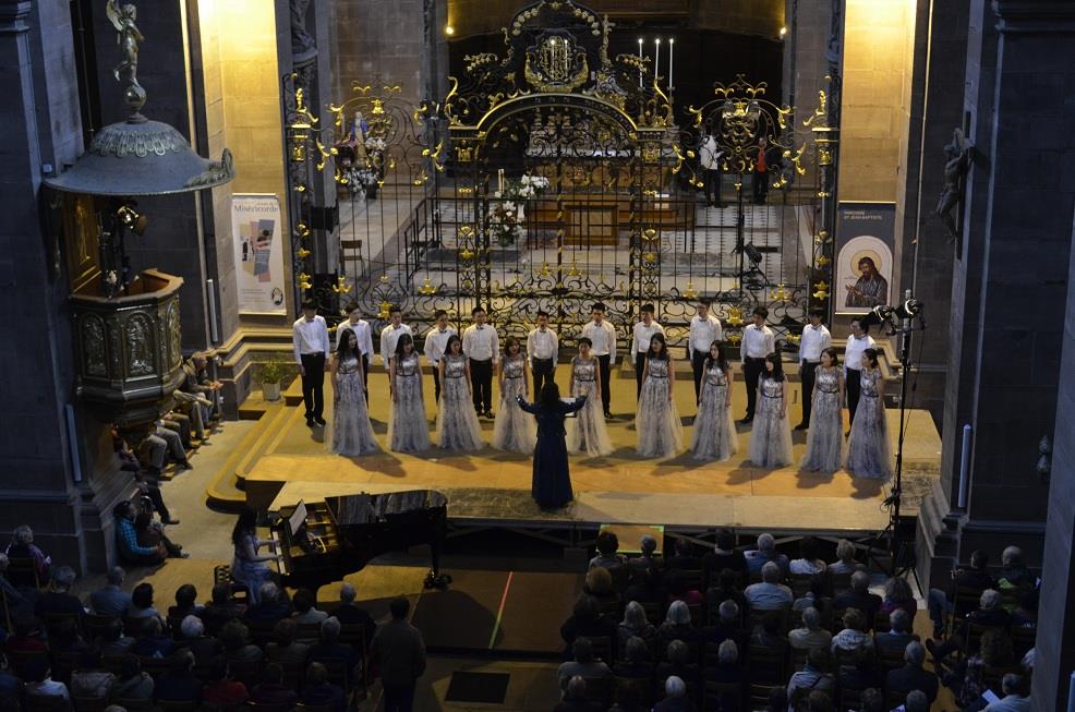 观众中有慕名而来的音乐爱好者、合唱爱好者,更不乏专业的指挥及法国的合唱团员。金沙集团1862cc成色合唱团演出曲目风格各异,其中有中外传统的民歌、圣歌以及近现代的合唱作品。值得一提的,音乐会上首演了金沙集团1862cc成色音乐学院教授、作曲家狄其安的合唱托卡塔《京韵》。这部作品结合了京剧传统的西皮、二黄的元素,用现代的合唱写作技法写作而成,作品体现了中国国粹的特色又展现出合唱艺术的魅力。两场演出中,从指挥到团员无不倾注全部的热情,唱到动情之处,更是潸然落泪,悠扬的歌声在教堂的穹顶之上盘旋萦绕。