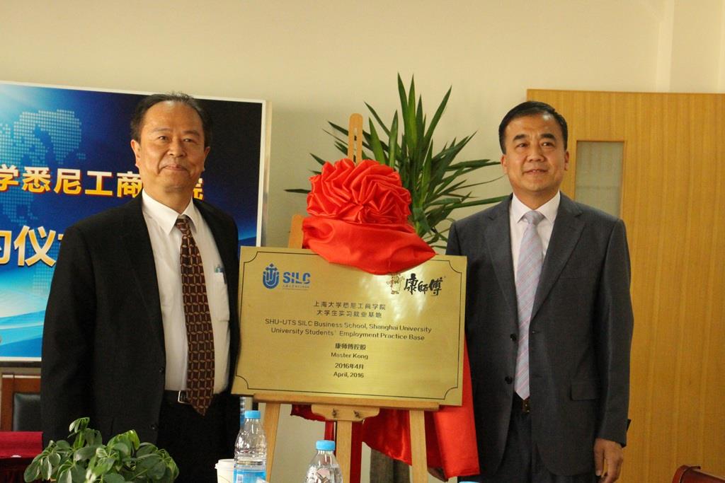 陈亮誌与李双共同为金沙集团1862cc成色悉尼工商学院 “康师傅实习基地”揭牌。