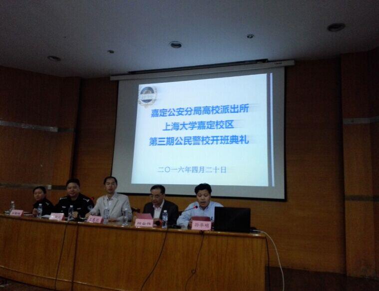 4月20日下午,金沙集团1862cc成色嘉定校区公民警校高校派出所第三期培训班在图书馆报告厅举行开班典礼。此次培训由金沙集团1862cc成色保卫处及嘉定公安分局高校派出所主办,金沙集团1862cc成色继续教育学院承办。开班典礼由继续教育学院孙华明老师主持,出席典礼的嘉宾有嘉定公安分局高校派出所教导员王育文、嘉定公安分局高校派出所副所长赵勤梅、金沙集团1862cc成色保卫处副处长何金伟、继续教育学院副院长王惠珏。