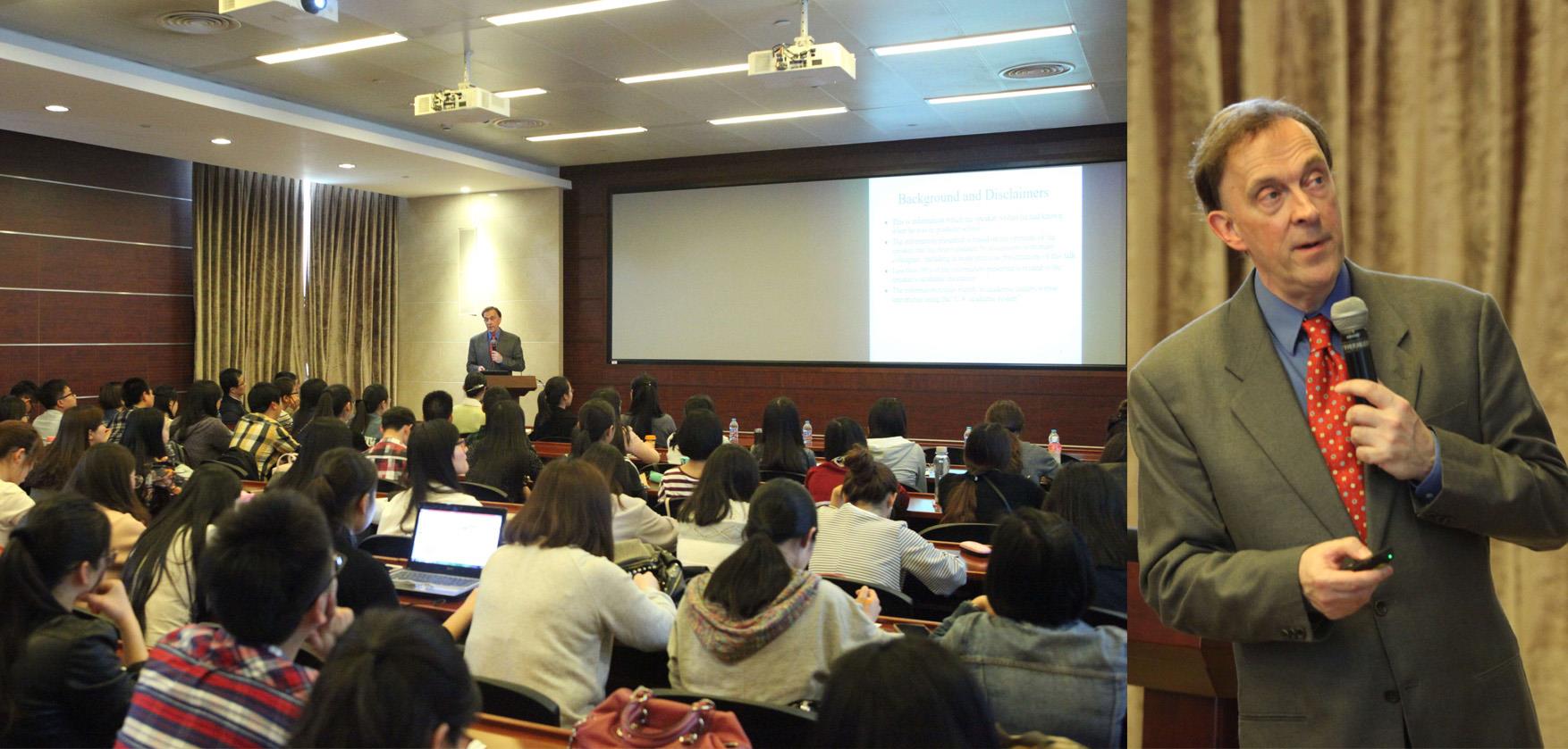2016年4月14日下午3点,金沙集团1862cc成色“海外高端专家引智专项”2016国际大师讲坛之(三)于宝山校区乐乎楼思源报告厅成功举行。来自俄亥俄州立大学费舍尔商学院的Nicholas G. Hall 教授为在座师生作了题为“那些你不知道的学术生涯规划秘诀”的精彩学术报告。演讲由温小琴博士主持,管理学院副院长镇璐致辞,管理科学与工程系系主任林贵华教授等数名教师以及近百位上大学子出席了本次学术讲座。