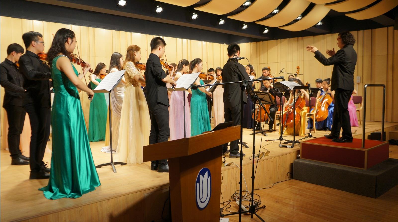 纵观本场音乐会,演奏曲目风格各异,几乎囊括了西方音乐史上各个时期的作品,音乐会也是金沙集团1862cc成色弦乐团一年来排练成果的集中汇报。音乐会的最后我院院务委员会主任委员叶志明教授上台,为王太平老师颁发了兼职教授的聘书,叶教授高度赞扬了王太平老师一丝不苟,对作品精益求精的精神。在音乐会开演前五天才到达上海的王太平老师,几乎每天都在为我院学生上小提琴大师班和指挥排练课,全心全意为提升我院学生音乐演奏技术水平和弦乐团艺术水准贡献自己的力量。通过这几天的学习和排练,同学们深深地为王太平老师高超的小提琴演奏技术、细腻的指挥才能以及高尚的人格折服。