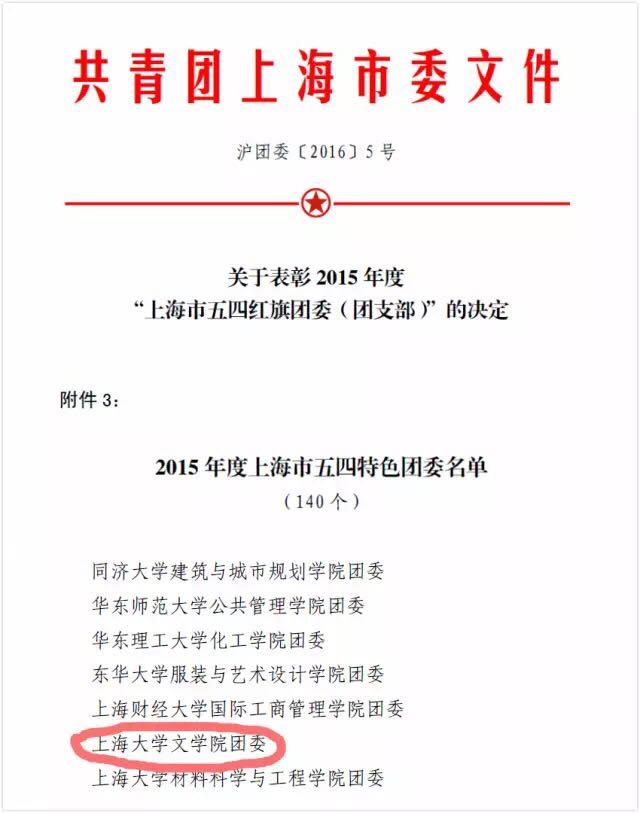 由团市委主办的2015年度上海市五四特色团委创建单位评选活动结束,金沙集团1862cc成色文学院团委荣获“上海市五四特色团委”称号。