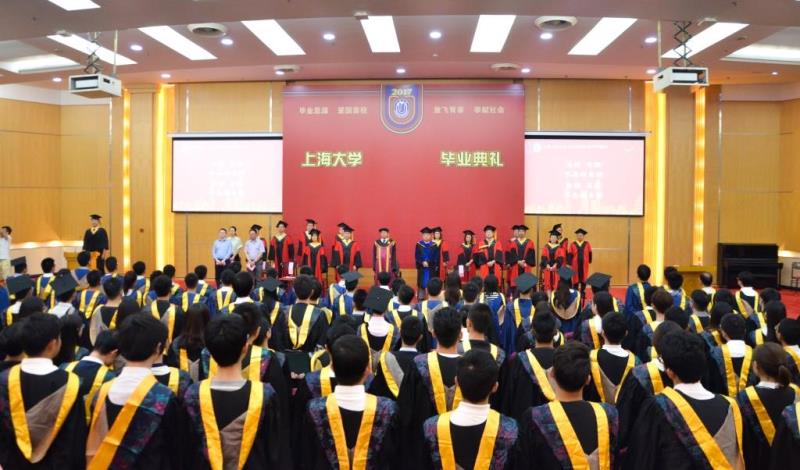 典礼最后,全体师生唱响校歌,校歌歌词中不断循环的“自强”一词,不断提醒着、激励着每一个上大人:不管遇到什么困难,不管遇到多大的挫折,都要自强不息。毕业典礼在热烈昂扬的歌声中圆满结束。