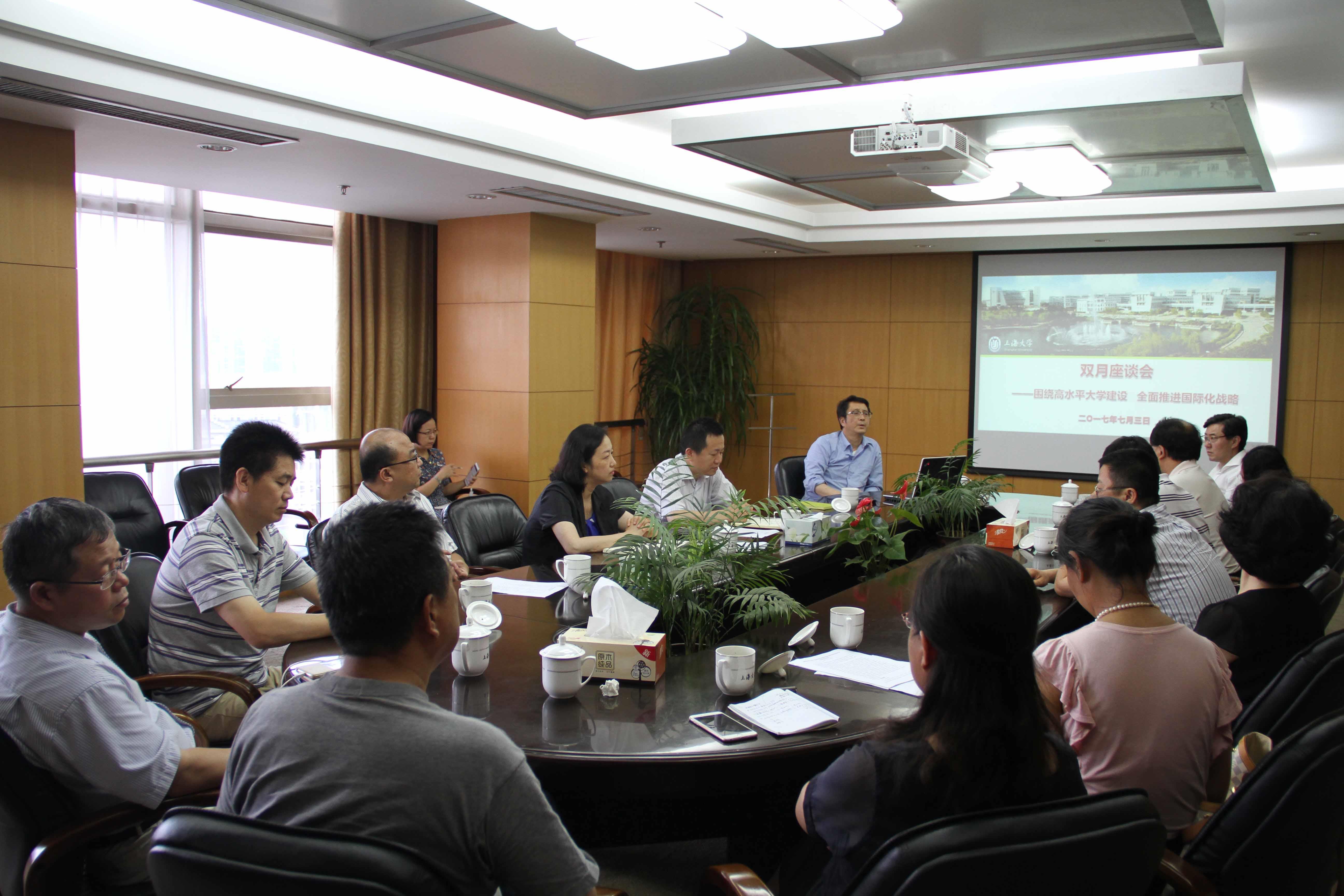 7月3日下午,校党委在宝山校区行政楼803会议室召开双月座谈会,会议就学校高水平大学建设中全面推进国际化战略听取统战成员的意见和建议。校党委副书记、副校长龚思怡出席会议并讲话,校国际事务处处长万旺根应邀参会。各民主党派、统战团体负责人,无党派人士代表及党外人大代表、政协委员等20余人参加座谈会。会议由校党委统战部部长曹为民主持。 会上,国际事务处处长万旺根就学校国际化办学的现状和问题、建设高水平大学的国际化战略、国际化战略的举措与行动计划、国际化KPI指标与国际化平台建设项目等方面进行了介绍。民盟上大委员会主委、市政协委员秦钠,无党派人士、静安区人大常委张建华,校侨联副主席蓝箭,九三学社上大委员会常务副主委、宝山区政协委员许斌,致公党上大委员会主委、静安区政协委员胡国辉,校侨联主席、民盟上大委员会副主委吴悦,校民族联副主任、宝山区政协委员李远勤,宝山区人大代表周丽昀,全国政协委员吉永华,校欧美同学会副会长姚喜明,无党派人士、市政协委员陆小聪,校知联会副会长陈立群,校欧美同学会秘书长黄俊逸等先后发言,他们对学校在全面推进国际化战略方面的举措、计划表示赞同,并就国际化战略推进中的政策宣传、管理制度制定、师资队伍建设、英文网站建设、留学生招生及培养、校园文化及公共空间建设等方面提出了意见和建议。 龚思怡副书记对大家积极关心关注学校高水平大学建设背景下的国际化发展战略表示了肯定,并就国际化战略实施中的相关问题和大家进行了深入交流。她希望各位党外代表人士进一步发挥优势和作用,并带动党派成员和周围的人共同参与学校高水平大学建设,在学校全面推进国际化战略中,主动开展深入调研,积极探索新机制、新平台、新路径,增进交流,凝聚共识,努力为我校高水平大学建设贡献更多的力量。 |