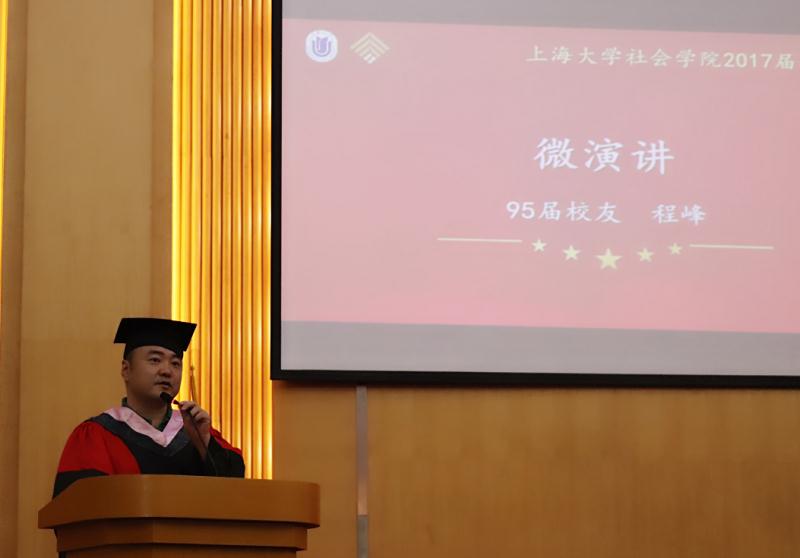 金沙集团1862cc成色社会学院校友分会副会长、资深媒体人程峰带来了题为《人生是场马拉松》的演讲,他启发毕业生思考人生的意义、怎样选择人生“跑道”、怎样心怀感恩地对待人生旅途的“陪跑者”、怎样面对人生的挑战与机遇等问题。勉励毕业生努力成为学院的光荣。