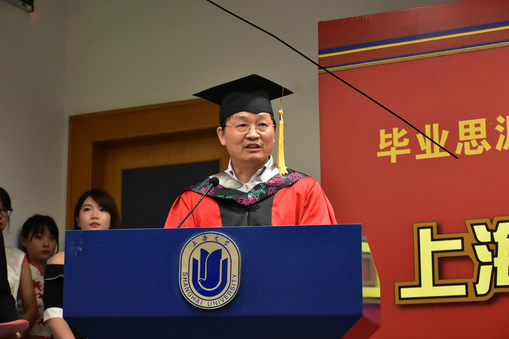 入场完毕,2016级本科生张洽闻、张卓君手执院旗、院徽入场,钱伟长学院院徽以钱伟长的首字母QWC进行变化,设计彰显了钱院学子自强不息的精神和学院追求卓越的理念。国歌奏唱完毕,钱伟长学院常务副院长张阿方教授进行了毕业致辞并介绍了2017届毕业生的培养情况。钱伟长学院2017届共有15名本科生顺利毕业。其中11名是材料基因组工程特色培养班学生,4名是本硕连读模式培养学生。大学四年,同学们在各类学科竞赛中取得了可喜的成绩。其中国际级10人次、国家级2人次、上海市级2人次;创新创业创意类获奖——校级2人次;文艺类获奖——省市级1人次;精神文明类获奖——市级1人次、校级2人次。全体毕业生中,其中国内读研9人次;出国读研3人次,另有1人次目前办理出国申请中;直接赴工作岗位就业2人次。张阿方教授在院长致辞中,希望同学们记住:一个成功者不会放弃,而一个放弃者永远不会成功!社会需要不浮躁、踏实进取、懂科学、有人文情怀的建设者!希望同学们坚守内心的圣洁,用我们所能及的力量,抵制社会不良现象。我们不需要哗众取宠和投机功利,我们需要扎扎实实地为社会作贡献。我们需要做一个有益于家庭、有益于社会、有益于人类的“好人”。他希望从国家试点学院走出去的每个学子时刻铭记金沙集团1862cc成色校训:“自强不息”,也希望大家能成为脚踏实地的坚守者,勿忘初心,勇攀科学的高峰,为自己的人生树立伟岸的丰碑,在优秀面前,永不言弃。