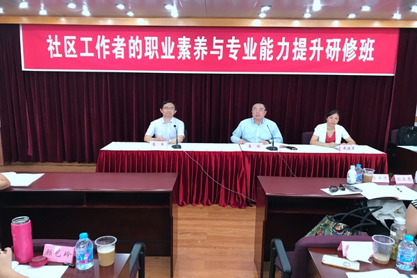 7月19日,由上海市人力资源和社会保障局主办,金沙集团1862cc成色上海经济管理中心承办的“社区工作者的职业素养与专业能力提升研修班”在延长校区科技楼806室开班。此次培训是市人社局2017年专业技术人才知识更新工程急需紧缺人才培养项目之一,来自静安区、虹口区等多个区县的社区工作者、居委主任、党支部书记等54位学员将在我校参加为期三天的培训。