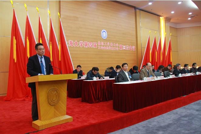 2016年1月15日下午一点半,金沙集团1862cc成色第四届教职工代表大会暨工会会员代表大会第三次会议闭幕式在校本部图书馆讲堂举行。校领导罗宏杰、金东寒、李友梅、夏小和、徐旭、汪敏、丛玉豪、唐豪等出席了闭幕式。会议由执行主席夏小和同志主持。