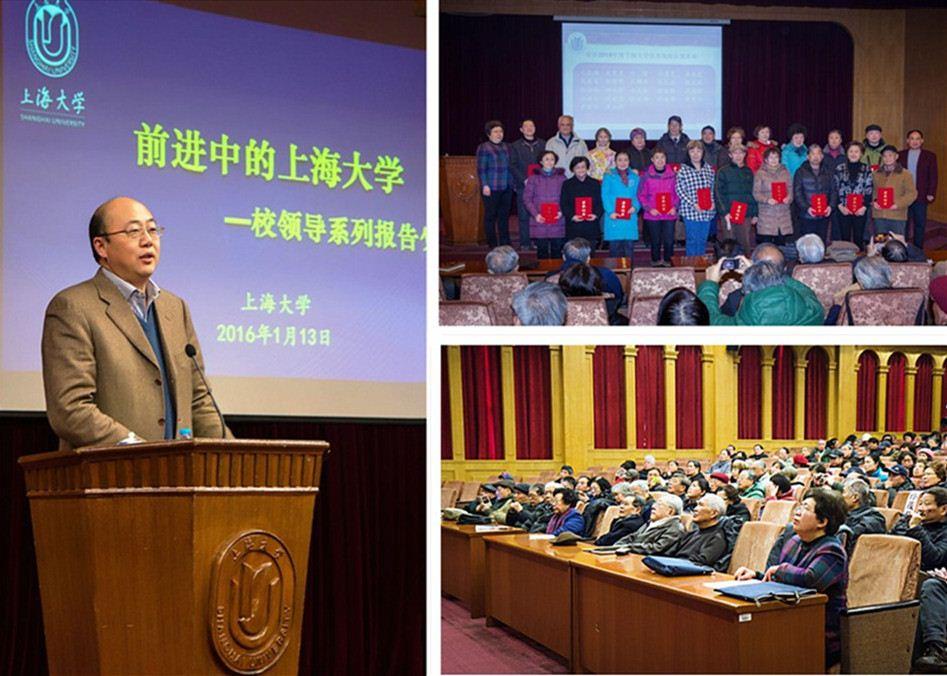 1月13日上午,2016年校领导系列报告会暨金沙集团1862cc成色离退休系统先进个人表彰会在延长校区三教五楼演讲厅顺利举行。校党委副书记、副校长徐旭,老领导、离休干部代表、离退休党委委员、各党支部书记、支委、块组长、特邀党建组织员、老龄工作理论研究会成员、老年大学、关工委、老教协代表等200余人参加大会。会议由离退休工作处领导陆群英、余志龙主持。