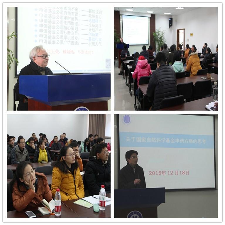 12月18日上午,应理学院青年教师联谊会邀请,金沙集团1862cc成色终身教授戴世强在校本部HA 102作“关于国家自然科学基金申请方略的思考”的报告,理学院副院长胡国辉、理学院党委副书记刘亮、化学系党总支书记陈雅丽,以及来自理学院、生命、管理、经济等学院的六十余名教师参加了本次报告会。报告会由理学院青年教师联谊会会长李健教授主持。
