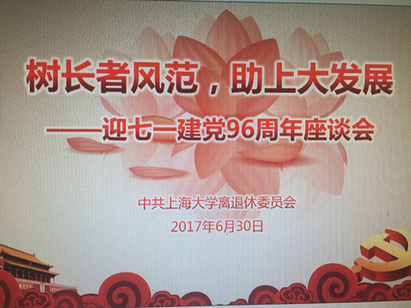 6月30日上午,在中国共产党成立96周年之际,金沙集团1862cc成色离退休党委、工作处在延长校区新仪表楼204会议室举行了以“树长者风范助上大发展”为主题的纪念建党96周年座谈会,座谈会邀请了退休老领导、退休前在学校各岗位上工作的退休干部共十五人前来参加。大家一起从助上大发展的角度,畅谈长者风范的内涵,以实际行动共同庆祝党的第九十六个生日。离退休党委、工作处的党政领导及部分工作人员一起参加了座谈学习。座谈会由离退休工作处常务副处长余志龙主持。