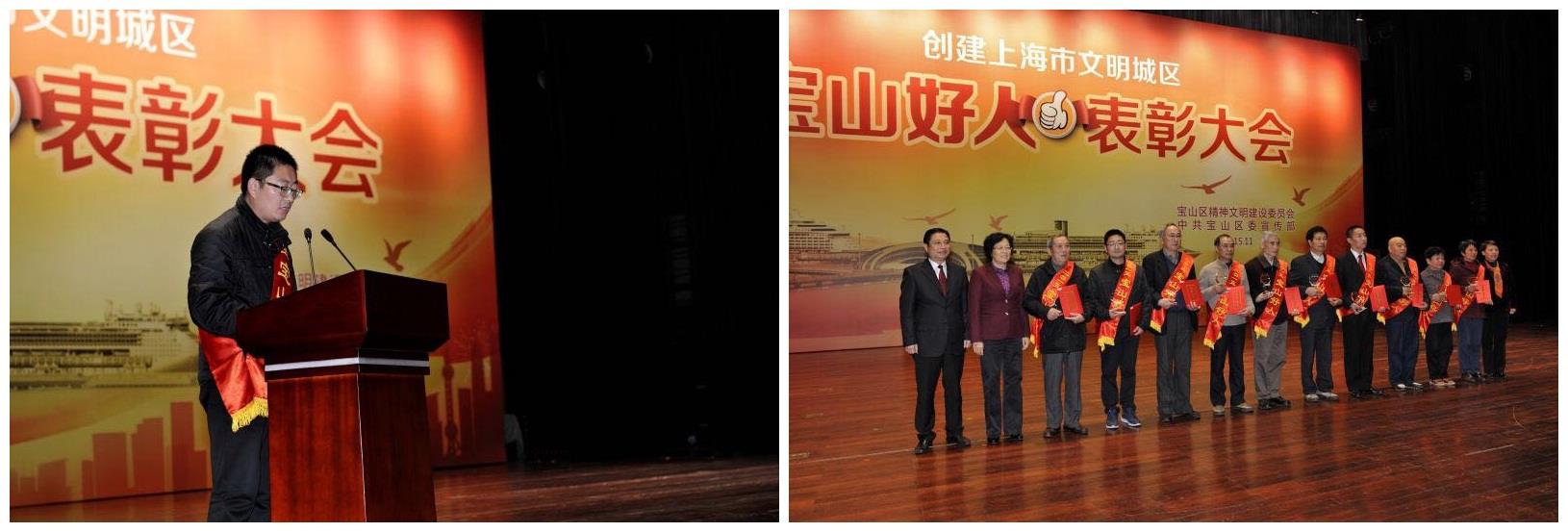 11月30日,在宝山区委党校举行的2015年度“宝山好人”表彰大会上,获评“宝山好人”的美术学院史论系副教授苏金成向大家缓缓道来,作为代表第一个上台发言《是好人激励我一辈子做好人》。上海市委宣传部、文明办及宝山区四大班子主要领导潘敏、汪泓、方世忠等参加了颁奖典礼。
