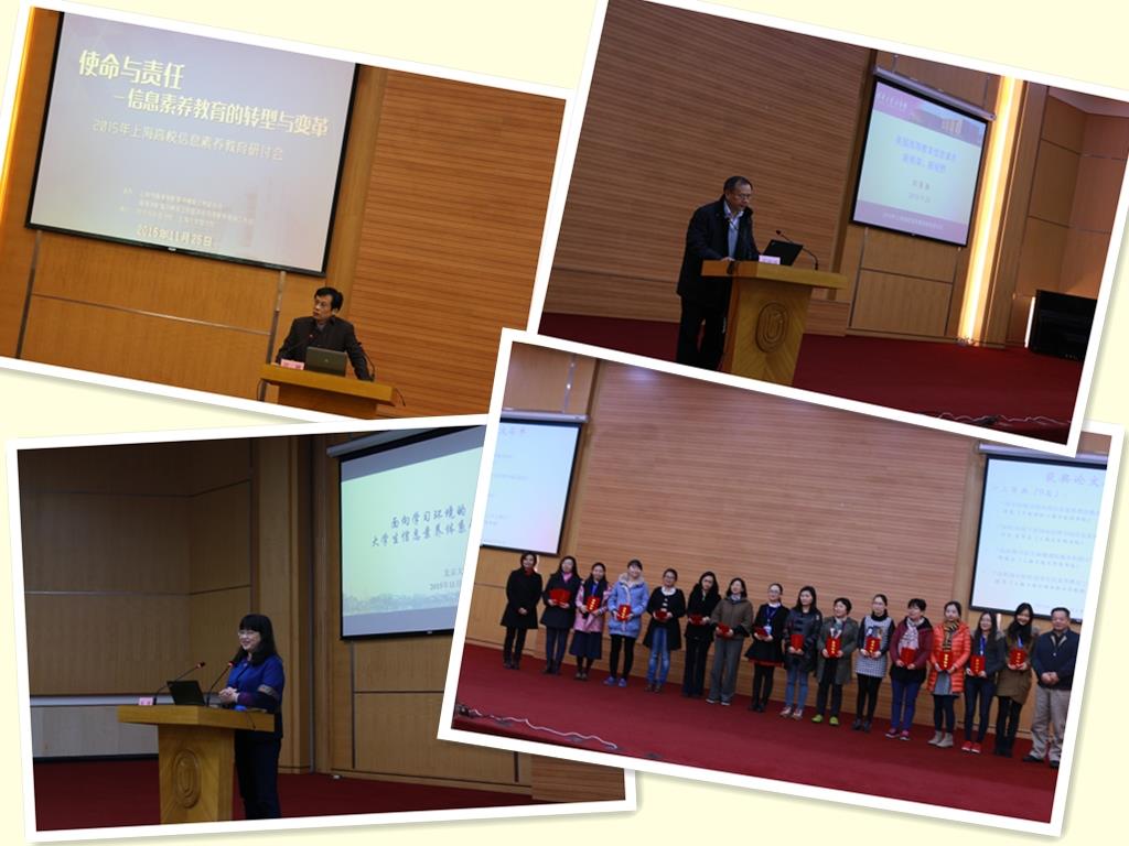 11月25日,“2015年上海高校信息素养教育研讨会”在金沙集团1862cc成色图书馆讲堂成功举行。本次研讨会主题为“使命与责任-信息素养教育的转型与变革”,旨在促进上海地区高校信息素养教育学术交流,推动信息素养研究。会议由上海市高等学校图书情报工作委员会(以下称图工委)及其信息素养教育工作组主办,同济大学图书馆、金沙集团1862cc成色图书馆共同承办。来自上海及华东地区27家单位的97名嘉宾参加了研讨会,参会的还有金沙集团1862cc成色图书馆的馆员及图情档专业研究生。会务组于5月份发出征文通知,共收到市内外23所高校提交的30篇论文,经组委会评审,共评出一等奖论文3篇、二等奖论文5篇、三等奖论文9篇。