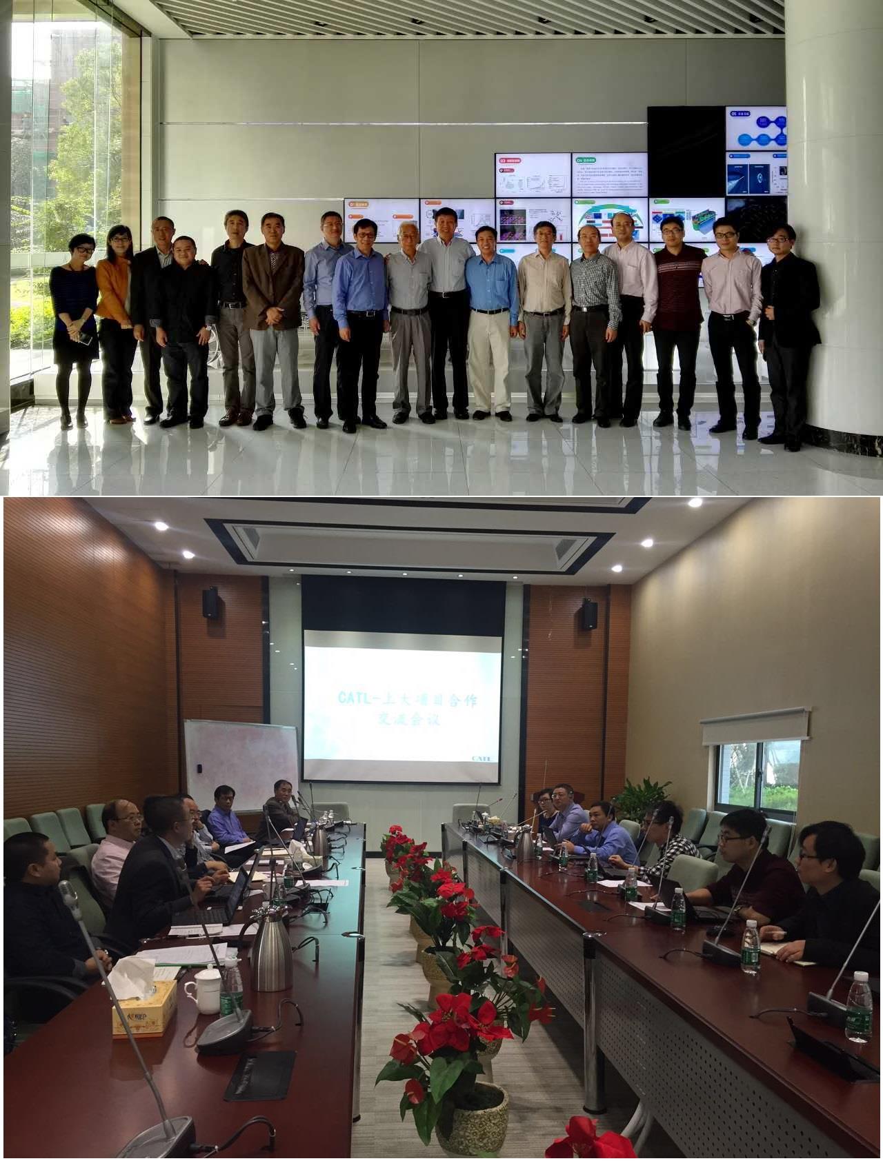 11月18日,金沙集团1862cc成色副校长汪敏教授、材料基因研究院院长张统一院士、副院长张文清教授,科技处钱光人处长、施鹰副处长、人事处朱明原处长等一行10人,专程赴福建宁德新时代能源科技有限公司(CATL)进行访问交流。CATL的董事长Mike、技术副总裁吴凯博士、技术总监梁成都以及相关研发人员参加了交流。