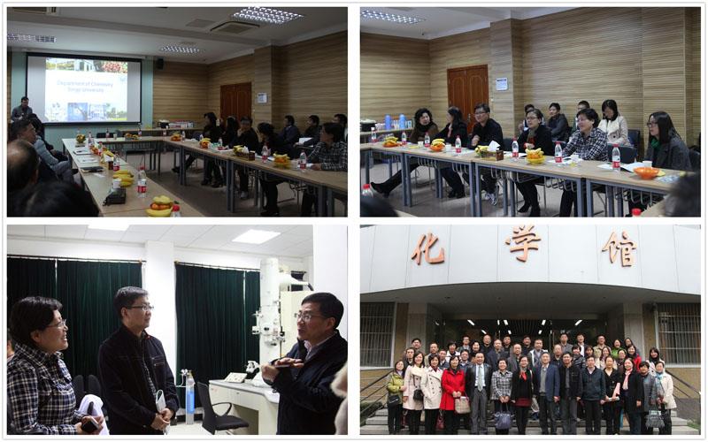 11月20日,化学系教师前往同济大学化学系参观交流。上午,交流会在同济大学化学楼102室隆重举行。与会人员包括同济大学化学系党委书记王国强、纳米中心执行主任吴庆生、化学系党委副书记相波、教学与学生工作办公室主任母朝静、系副主任王启刚、系副主任范丽岩、办公室主任王晓平、实验教学中心主任张荣华及薛作英、刘明贤、姚天明,金沙集团1862cc成色理学院党委副书记王东媛、化学系党总支书记陈雅丽、系主任许斌、系副主任丁益民、系总支副书记姚颖冲及教授、党员、积极分子近40人。