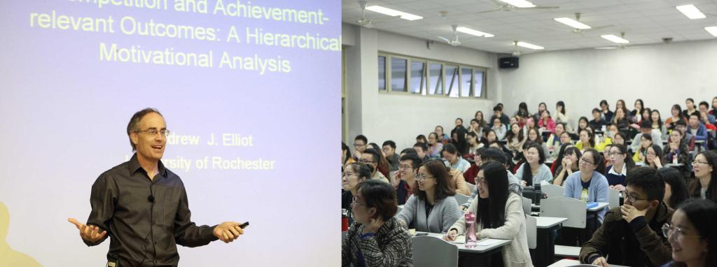 11月18日上午9点,金沙集团1862cc成色“海外高端专家引智专项”2015国际大师讲坛之(九)于宝山校区B楼J103成功举行。著名心理学家、美国罗切斯特大学的Andrew J. Elliot教授为在座师生作了题为“竞争与个人成就:一个层级动机分析架构”的精彩学术报告。演讲由管理学院张昊民教授主持,国际事务处倪兰副处长致辞,来自管理学院、经济学院、社区学院、国交学院的150多位师生参加了此次讲座。