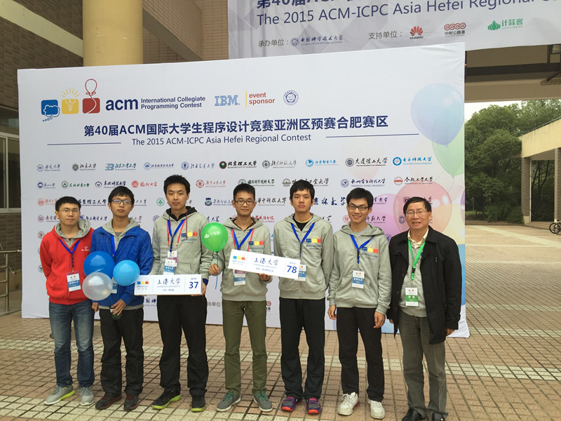 11月7日至8日,第40届ACM国际大学生程序设计竞赛亚洲区合肥站的比赛在中国科技大学举行,本次比赛有来自北京大学、清华大学、上海交通大学、电子科技大学、香港中文大学等高校的94支队伍参赛,这是由全国近1353支参赛队参加的网络赛选拔出来的,比赛由中国科技大学命题,比赛时间5小时。我校派出了Wand Maker队和由计算机学院14级本科生张自强、金钟镛、赵英辉组成的naïve队,由沈云付、李卫民老师担任教练,沈云付老师带队。