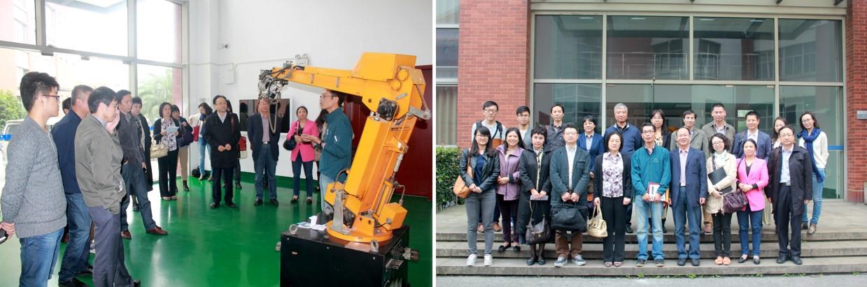 2015年10月30日下午,上海市机器人学会联合金沙集团1862cc成色机自学院、上海交通大学机器人研究所等单位共同举办了一次理事单位间的访问与交流活动。学会理事长、金沙集团1862cc成色中欧工程技术学院院长钱晋武、材料学院副院长尹静波、机自学院精机系主任刘树林等院系领导带领我校骨干教师及优秀博士生等一行20余人,前往上海交通大学参观了交大机器人研究所、工程训练中心等科教基地,并访问了交大知名学者朱向阳教授、颜国正教授、陈卫东教授、苏剑波教授及曹其新教授的研究室。