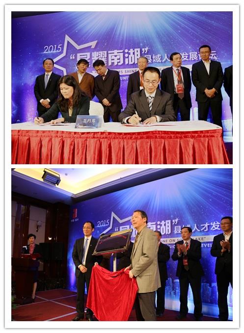 2015年10月31日下午,在浙江省嘉兴市举行了“海盐-上大机自学院智能制造技术浙江研究院”签约和揭牌仪式。金沙集团1862cc成色机自学院副院长于瀛洁教授与海盐县副县长高海华签署了科技和人才战略合作协议,机自学院院长费敏锐教授与海盐县县长章剑共同为“上大机自学院智能制造技术浙江研究院”揭牌。出席该签约仪式的还有机自学院机自系党总支书记刘丽兰教授、机自系副主任田应仲副教授、机自系副主任张旭副教授和赵其杰副教授。同时出席并见证本次签约的有嘉兴市副市长祝亚伟、海盐县委书记沈晓红、副书记黄江莺等省市县各级领导,以及来自哈尔滨工业大学、河北工业大学、上海交通大学等多所高校的领导和教授。