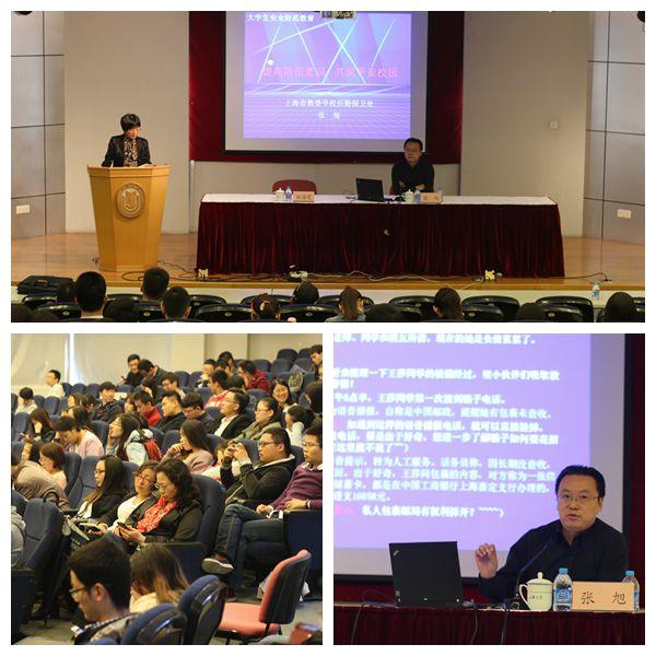 10月29日下午,以“提高防范意识,共筑平安校园”为主题的研究生安全教育讲座在金沙集团1862cc成色宝山校区行政楼报告厅举行。上海市教委学校后勤保卫处副处长张旭应邀为金沙集团1862cc成色研究生普及相关安全知识与相应的防治措施,提醒研究生快乐的人生从安全开始。学校武保处处长沈龙骥、党办副主任魏宏出席,讲座由党委研工部部长林海霞主持。