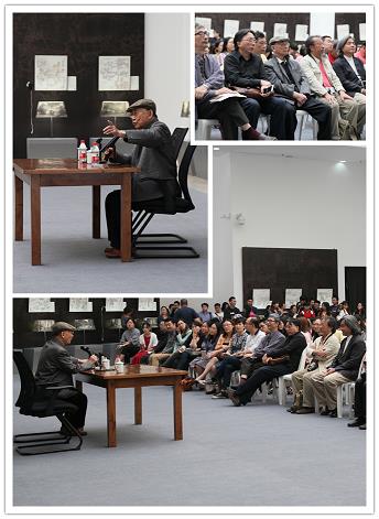 在当天举行的讲座上,贺老拉开话匣子,一讲就是两个小时,以幽默、睿智的语言,生动、贴切的实例把他对艺术创作的理解及经验传授给大家,并与大家分享了他的艺术修养及为人处世的道理,博得听众的阵阵掌声。贺老表示, “做人比作画更要紧,要做一个明白人,要明白自己是什么人,明白事理。”在讲座中,贺老结合自己连环画艺术取得的成绩,给大家提炼有关艺术上的理论与见解。如“提出问题,找到答案。”他认为发现问题比找到答案要难,要有一定的高度才能提出问题;“发现与区别”、“发现”就是留意生活中的精彩瞬间、有趣细节,把脑子当成仓库,什么都往里面塞,要用的时候再搜索出来。而当生活素材积累到一定程度,便可从中提炼、捕捉不一样的艺术感觉,这就是“区别”,“不仅是和别人的区别,也和不同时期的自己的区别”。讲座最后,贺老以自己多年来在艺术生涯中感悟到的美术创作“老三句”赠予大家:“从生活中捕捉感觉,从传统中寻找语言,从创作实践中发现自己。”