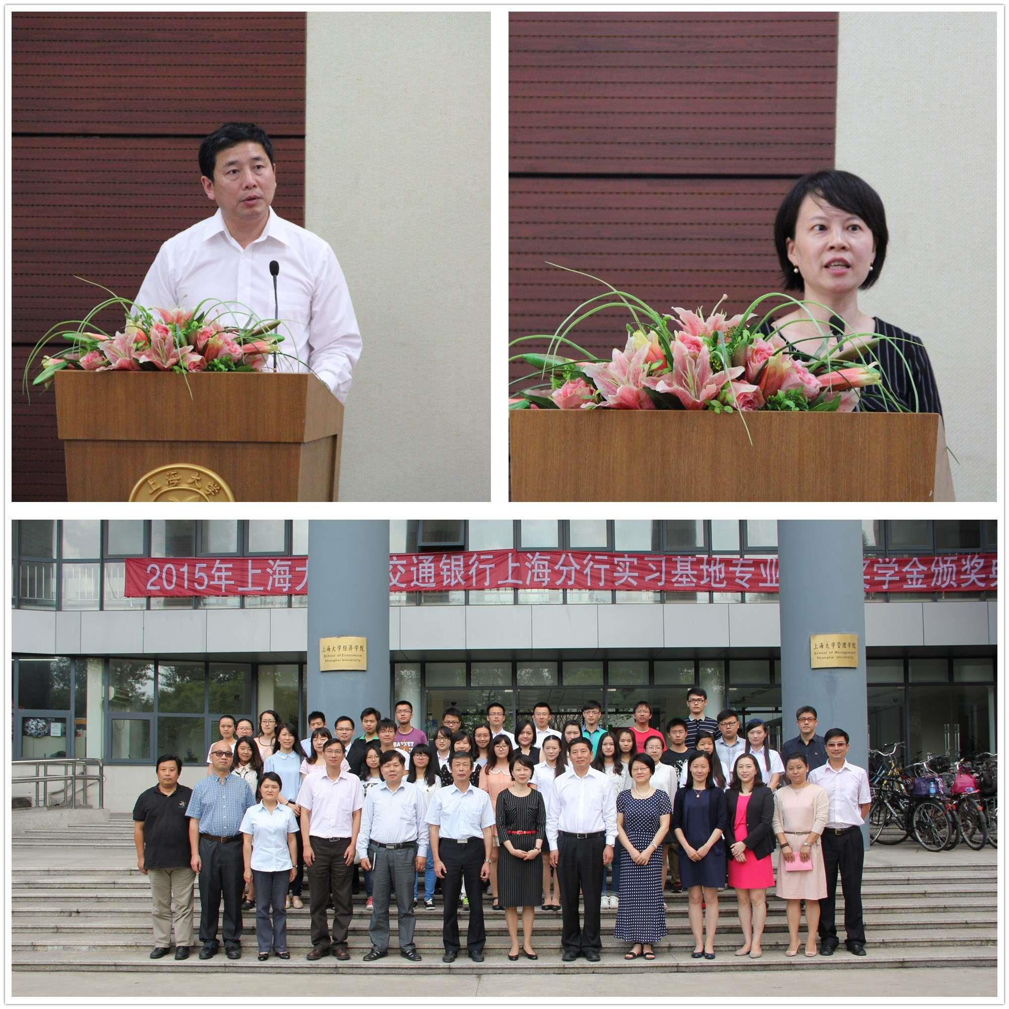 9月24日上午10时,2015年金沙集团1862cc成色—交通银行上海分行实习基地学生专业实习奖学金颁奖典礼在金沙集团1862cc成色宝山校区经管大楼115报告厅顺利举行。金沙集团1862cc成色党委常委、副校长丛玉豪,交通银行上海分行副行长赵彩虹等金沙集团1862cc成色和交通银行上海分行相关职能部门领导及参与交通银行暑期实习的同学共计100余人出席了此次典礼。 颁奖仪式开始前,金沙集团1862cc成色经济学院院长沈瑶简要回顾了自2007年金沙集团1862cc成色与交通银行上海分行合作以来的发展历程及取得的成效,金沙集团1862cc成色—交通银行上海分行实习基地先后获得上海市、教育部实习实践基地等荣誉离不开两所单位的共同努力。