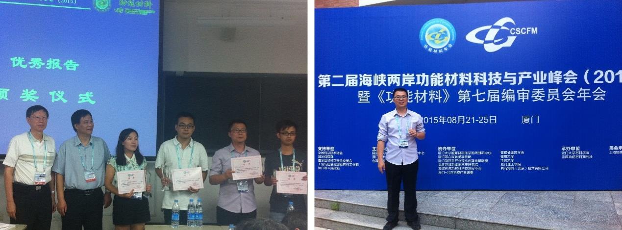 2015年8月21-25日,第二届海峡两岸功能材料科技与产业峰会(2015)曁《功能材料》第七届编审专家年会在福建厦门举行。我校材料科学与工程学院老师受邀参加,在材料学院施鹰教授和谢建军教授的指导下,该院电子信息材料系学生张晓欣代表金沙集团1862cc成色参加,并作报告,汇报我校近年来在稀土功能材料方面取得的研究进展,并最终喜获“优秀报告奖”。