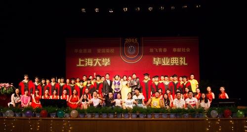 毕业典礼开始前夕,11级毕业生同学纷纷踏上了精心准备的红毯,并在毕业墙前签名留念。随后,毕业典礼在洋溢着青春与奋斗历程的“2015年毕业生视频”中拉开了序幕。在热烈的掌声中院长费敏锐教授和书记刘亮教授引领教师和嘉宾入场。雄壮的中华人民共和国国歌奏起,全体师生起立共唱。