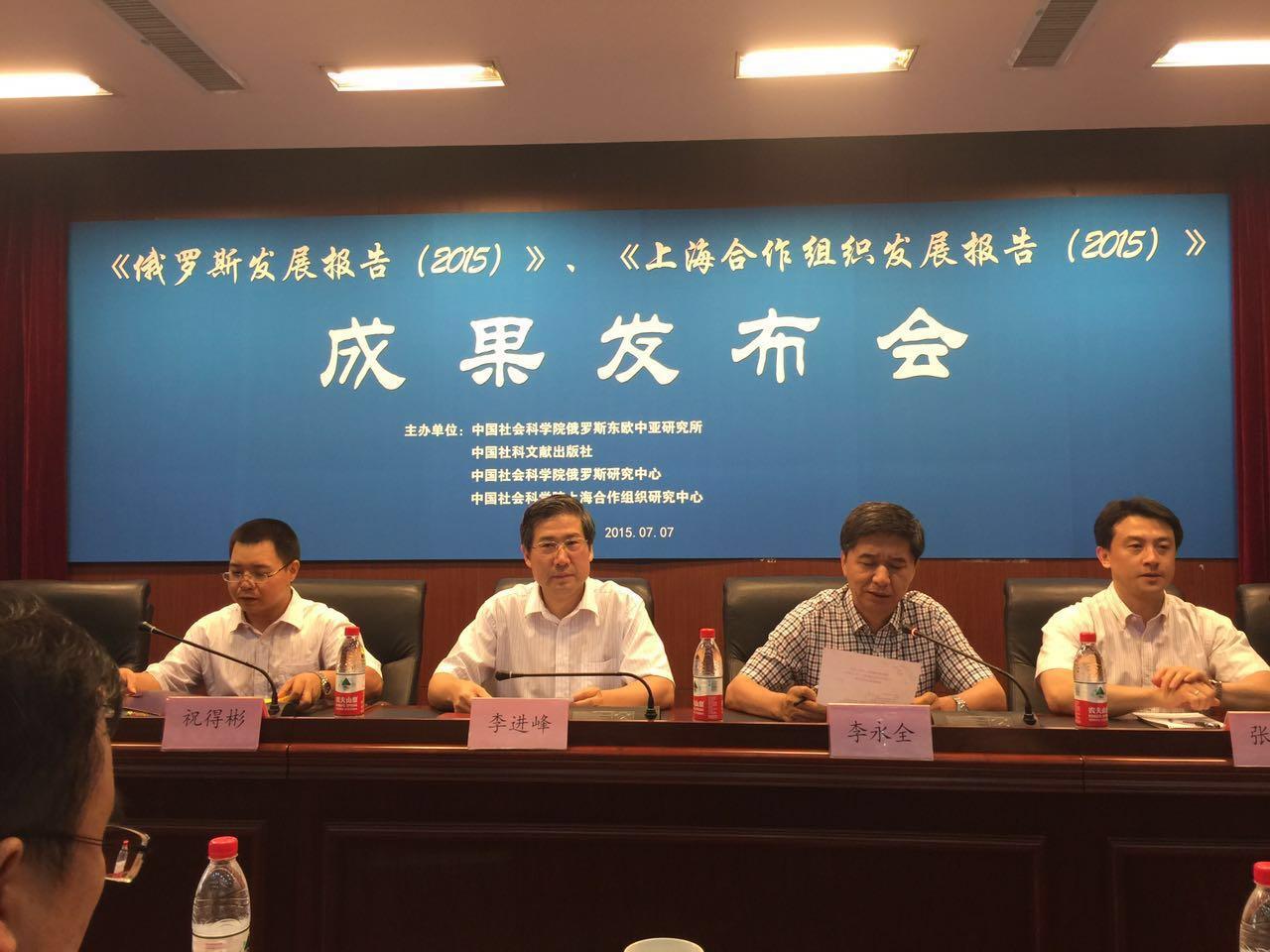 7月7日,中国社会科学院俄罗斯东欧中亚研究所、金沙集团1862cc成色上海合作组织公共外交研究院及社会科学文献出版社共同在京举办了上海合作组织黄皮书《上海合作组织发展报告(2015)》的新闻发布会。发布会围绕上合组织面临的国际和地区形势、复杂的地缘政治经济格局变化进行了深入剖析,并就国际地区热点问题和重大事件对组织发展的影响,进行了细致探讨。发布会由中国社会科学院俄罗斯东欧中亚研究所所长李永全主持。中国社会科学院俄罗斯东欧中亚研究所党委书记李进峰、金沙集团1862cc成色上海合作组织公共外交研究院副院长张恒龙等众多专家学者出席发布会。
