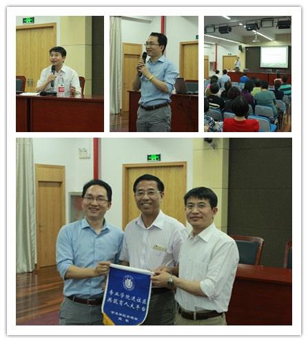 5月27日下午,学生社区在社区学院二楼多功能厅举行员工培训活动。本次活动邀请社会学院负责学生思政教育的副书记陈然老师,以及社会学院社会工作系副主任杨锃老师前来,就社会学院基本概况以及学生心理问题,向社区员工进行讲解和交流。讲解过程中,两位老师先后用自己的从教经历和社会上比较具有代表性的案例为引导,向在座的社区楼幢管理员强调了关注学生心理健康的重要性。杨锃老师还指出,在校学生有三分之一的时间是在住宿园区中度过的,关注学生寝室内的心理问题,也是校园心理健康工作的重要组成部分,社会学院将和社区建立互动机制,及时发现,及时沟通,做好学生的心理健康和安全工作。培训活动由学生社区校内区域主管吕宝川主持,社区副主任陈伟平老师和宝山校区各区域区长、管理员、办公室人员出席。