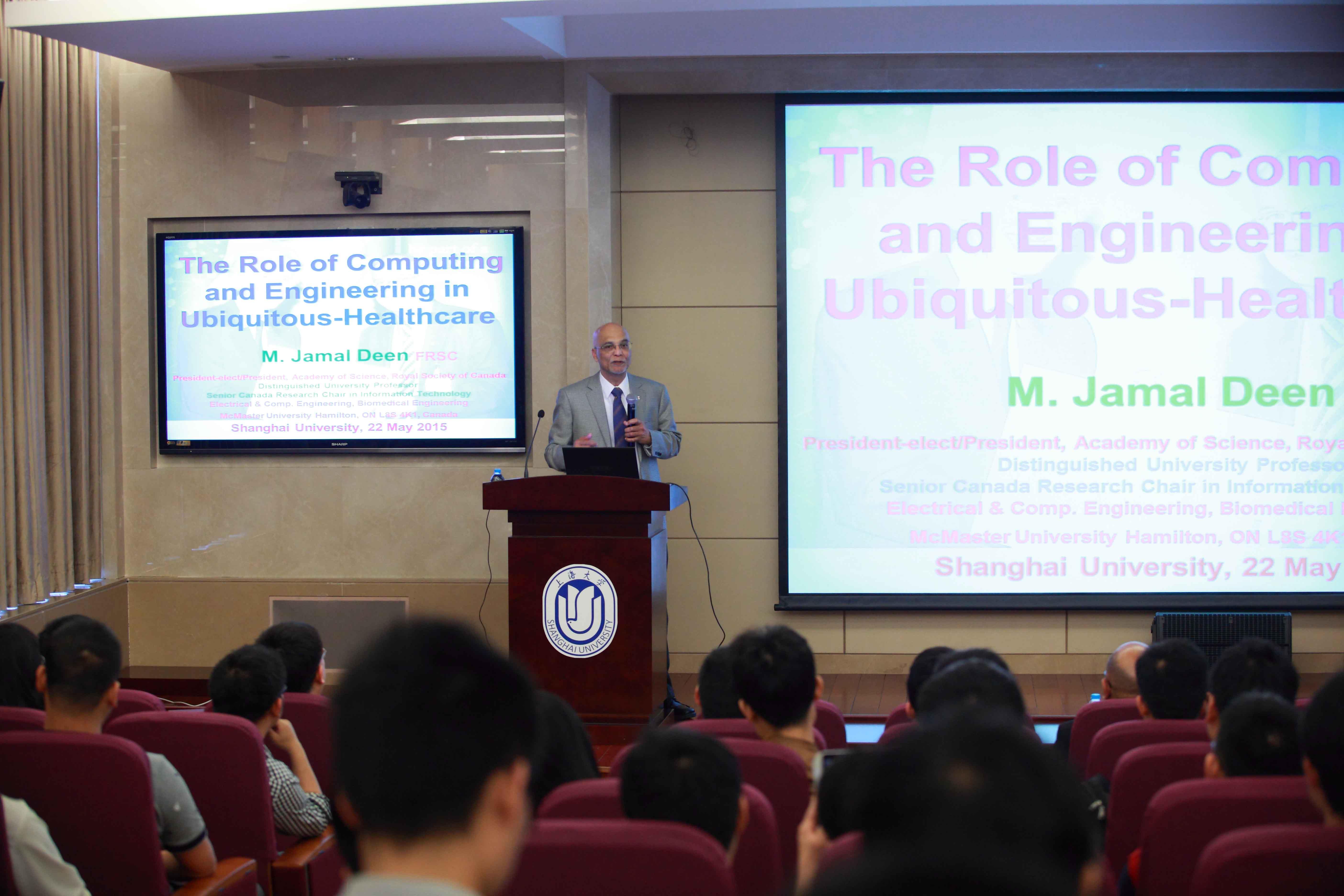5月22日上午10:00,我校2015国际大师讲坛之(六)正式开讲。此次演讲的题目是:The Role of Computing and Engineering in U‐Healthcare 无处不在的健康关怀(U-Healthcare)中计算机和工程技术的作用。演讲人是加拿大皇家科学院院长(2015-2017)、麦克马斯特大学杰出教授Mohamed Jamal Deen 院士。演讲前,金沙集团1862cc成色党委书记、校长罗宏杰教授在乐乎新楼上善厅会见了加拿大麦克马斯特大学的Mohamed Jamal Deen院士和Ridha Khedri教授,聘请Mohamed Jamal Deen院士为金沙集团1862cc成色名誉教授,并同时聘请Ridha Khedri教授为金沙集团1862cc成色兼职教授,聘任仪式后,双方进行了诚挚友好的交流互动。