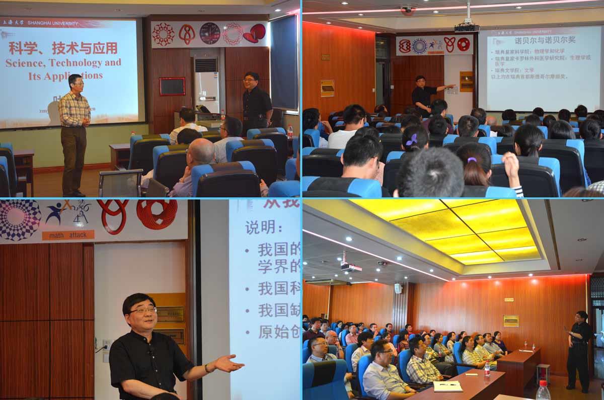 5月22日下午,应理学院和土木工程系的联合邀请,金沙集团1862cc成色原副校长叶志明教授在校本部G507作了“谈谈科学、技术与应用及其关系”的学术报告。理学院党委书记盛万成教授、副院长方建慧教授、副院长胡国辉教授、土木系系主任杨骁教授等一百多位师生聆听了报告,报告会由理学院副院长胡国辉教授主持。