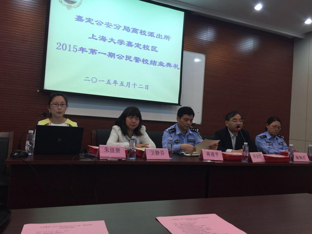 5月12日晚,公民警校金沙集团1862cc成色嘉定校区第一期培训班在悉商文德楼三楼报告厅举行结业典礼。来自悉尼工商学院的50名公民警校学员参加了结业典礼。嘉定公安分局高校派出所所长蒋建平、金沙集团1862cc成色武保处副处长何金伟、悉尼工商学院党委副书记卫静芬、高校派出所民警谢佩君、悉尼工商学院老师颜丽娜、武保处老师朱佳贤出席了结业典礼,并为学员们颁发了公民警校结业证书。