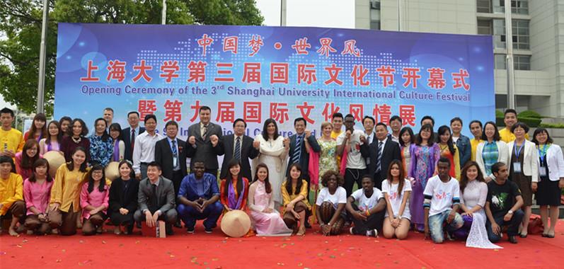 为进一步繁荣校园文化,弘扬兼容并包的校园文化精神,以“中国梦·世界风”为主题的金沙集团1862cc成色第三届国际文化节于2015年4月29日上午10:00在校本部图书馆前广场隆重开幕。开幕式由校党委宣传部部长李坚主持,副校长汪敏致欢迎辞,副书记、纪委书记夏小和宣布开幕。参加开幕式的还有巴基斯坦驻沪总领馆代总领事法哈特·艾莎女士(Mrs Farhat Ayesha)、委内瑞拉驻沪总领馆总领事莱斯贝斯·贝里奥斯·莱昂女士(Ms.Leisbeth Berríos León)、乌兹别克斯坦驻沪总领馆总领事萨伊达卡摩勒·阿戈扎姆赫德热耶夫先生(Mr.АгзамходжаевСаидкамол)等嘉宾、学校各机关部处和学院的领导以及广大的中外师生。