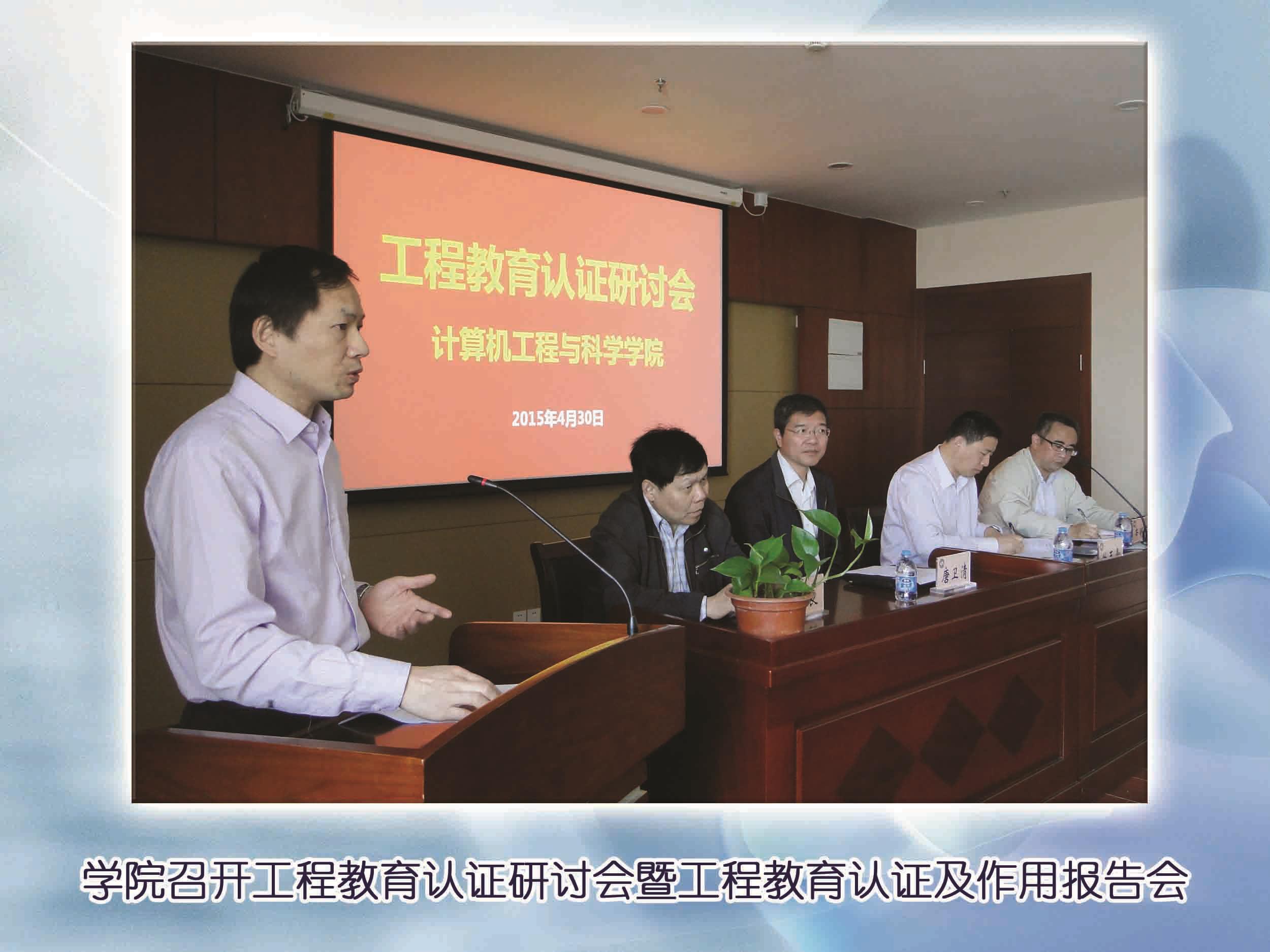 2015年4月30日上午,计算机工程与科学学院工程教育认证研讨会在东校区计算机大楼1106室召开。会议由计算机学院党委书记郭纯生老师主持,金沙集团1862cc成色副校长丛玉豪教授、考评办辛明军主任、教务处徐学良副处长出席会议。计算机学院、管理学院及相关部门的老师参加了会议。