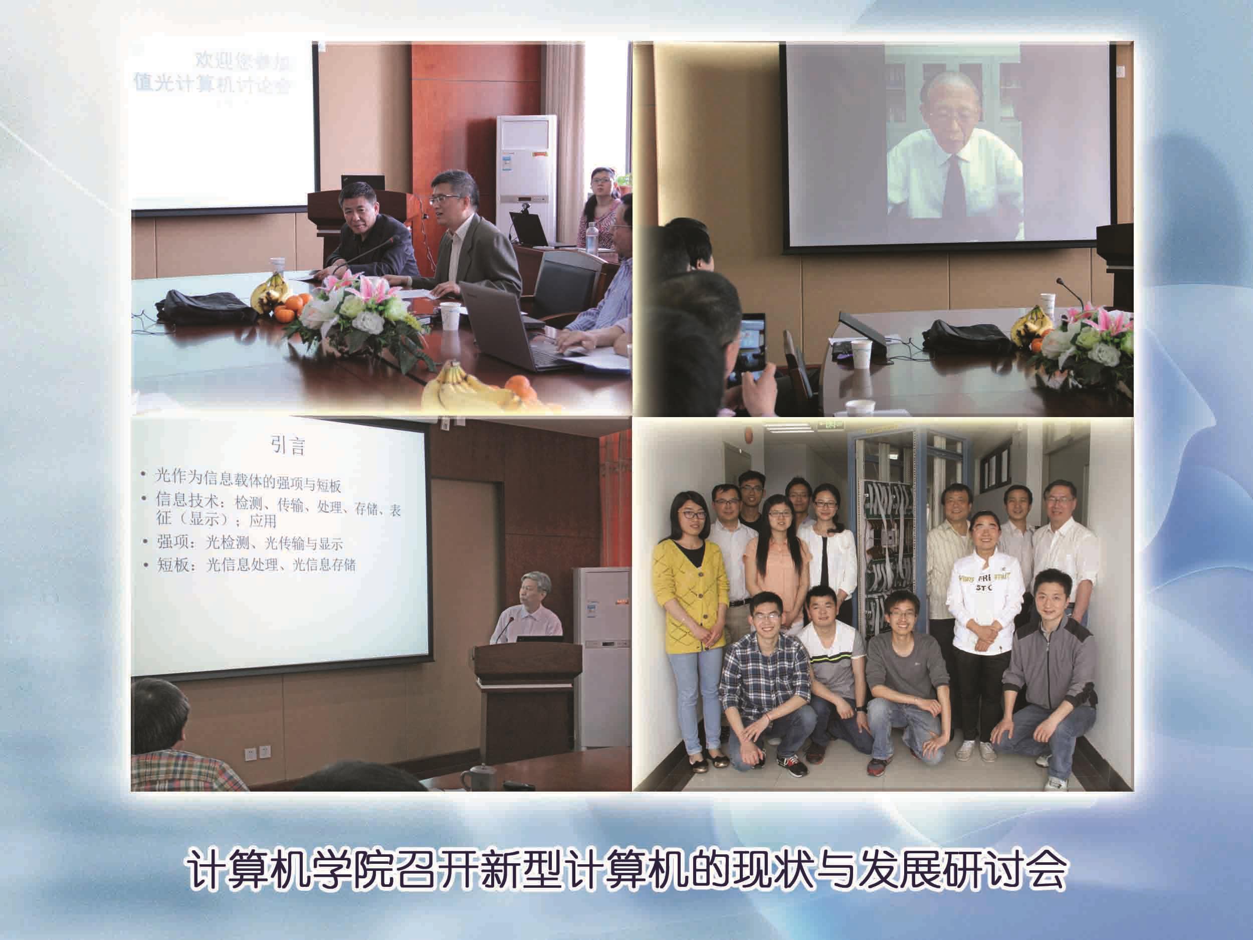 上午,中科大韩正甫教授做了关于量子计算机的报告,中科院计算所陈天石副研究员详细介绍了寒武纪神经网络计算机,哈工大李淳飞教授讲解了用光强表达信息的三值光学计算机,北京交大吴重庆教授提出了光学计算机硬件结构若干问题的思考;下午,我校金翊教授和张武教授分别做了三值光学计算机研究现状、三值光学计算机研究的当前主要任务概述的报告,在场专家给予高度评价并提出自己的看法。之后,欧阳山博士、韩越兴博士、李颖博士、李卫民博士和沈云付博士分别召集了关于三值光计算机硬件、软件、数学计算例程和大数据计算问题等专题讨论,在场专家就各个专题进行了激烈探讨,并交流了意见。