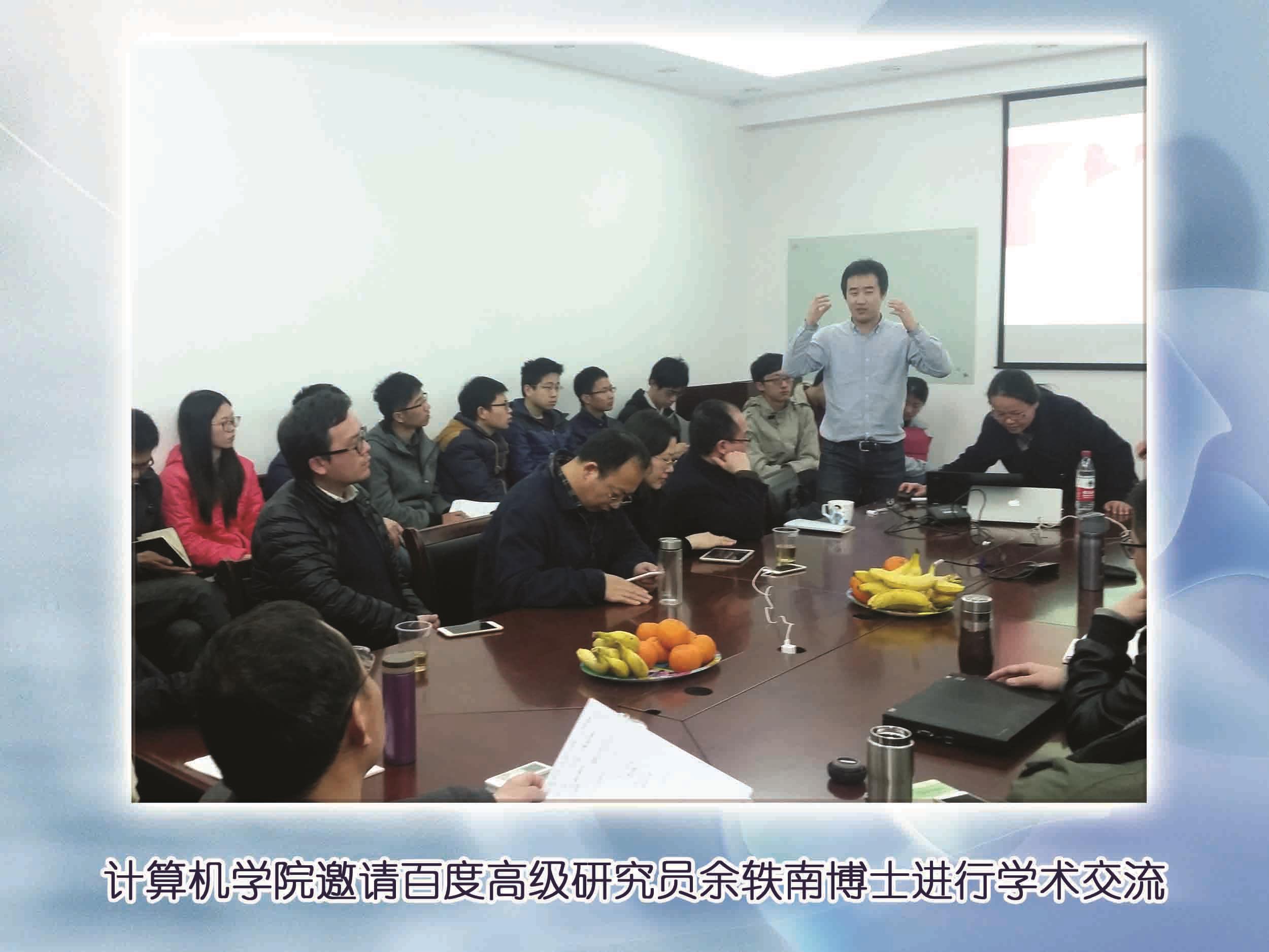 2015年3月20日早上10:30,计算机工程与科学学院邀请百度深度学习研究院高级研究员余轶南博士在计算机大楼402会议室举办了题为《Deep Learning Unfolds Big Data Era》的学术报告,来自公安部三所、我校机自学院、通信学院和计算机学院的研究人员、教师、研究生和本科生参加了本次报告。