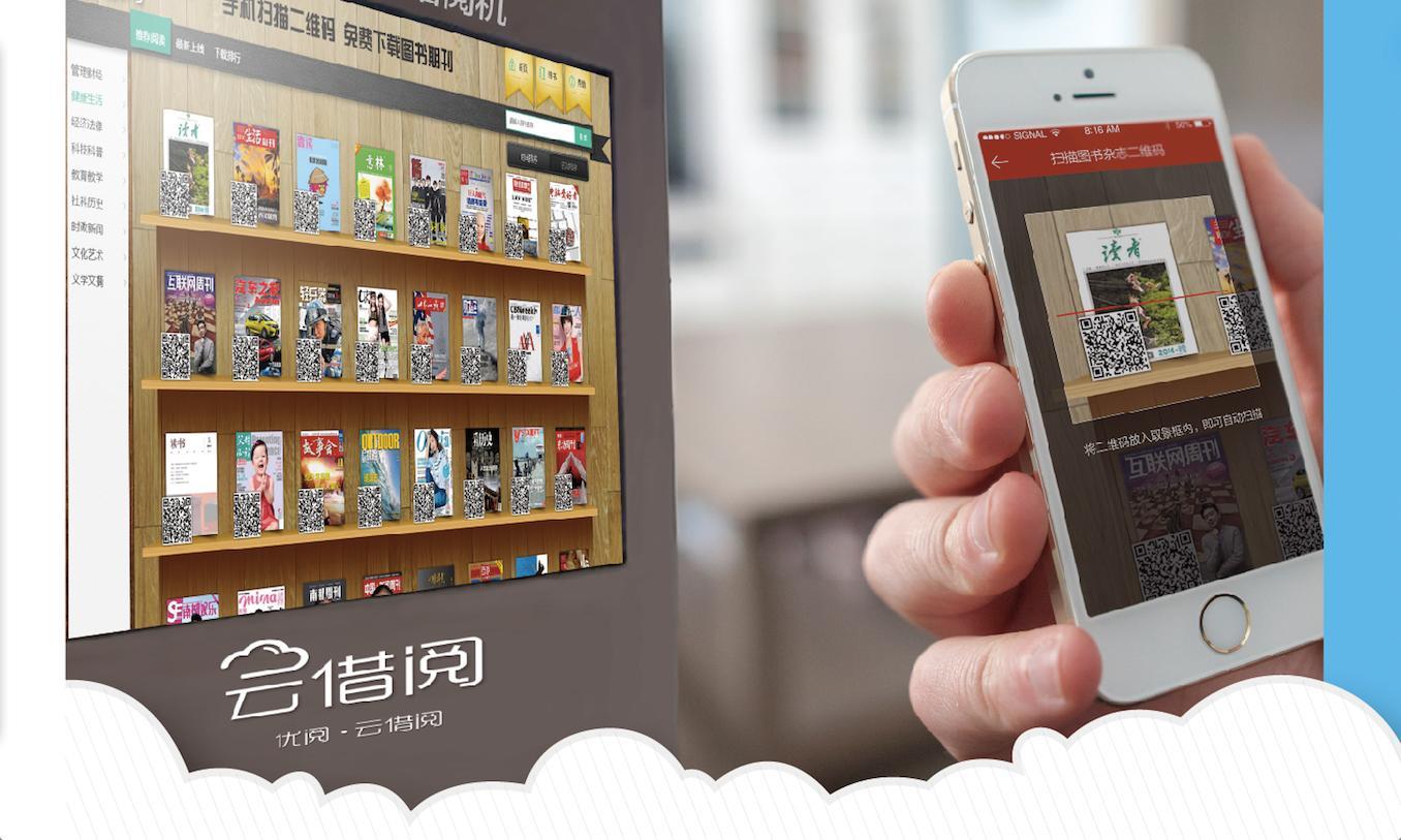 在歌德电子书借阅机旁边,是新落户图书馆的龙源期刊“云借阅”机,一人多高,全身黑色,远望去,似一部大型超薄手机。触摸屏,界面与iPhone推出的ibooks相似。“云借阅”是24小时自助数字图书馆,主要有期刊、图书两大类,其中期刊有100种、图书2000种,每一本书刊都是精心挑选目前市面上最畅销的。读者轻触系统屏幕,功能、分类一目了然。期刊分为综合文化、娱乐生活、时政新闻、人文科普、故事小说、财经管理等六大方面,包括《读者》、《故事会》、《看天下》、《女友》、《三联生活周刊》、《第一财经周刊》等大众耳熟能详的各式杂志。