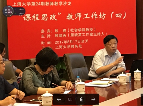 随后,社会学院顾骏教授“坐堂”,与来自各学院的30余名试点课教师面对面交流,结合自身经验认认真真地盘点各门课程,既开出“药方”,又转换思路,添加佐料,一一给出中肯提点。