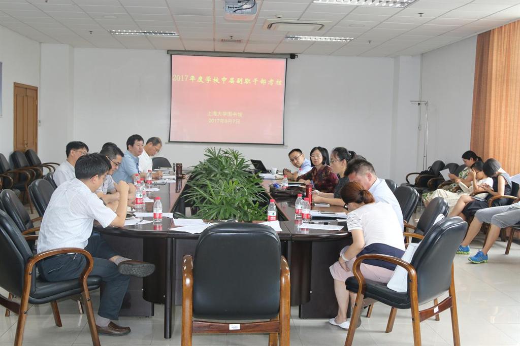 为进一步加强图书馆干部队伍建设,发挥干部考核的指挥棒作用,推动图书馆事业科学发展,根据学校《关于做好2017年度学校中层副职考核工作的通知》精神,“图书馆2016—2017年度副职干部考核测评会”于2017年9月7日下午在校本部图书馆三楼会议室举行,图书馆主管以上干部、支部书记、工会主席以及妇委会、青联会、民主党派代表出席,理学院许斌教授、生命学院翁新楚教授、信息办副主任顾爱军老师应邀参会,组织人事部叶泰和老师列席指导。会议由图书馆直属党总支书记王远弟主持。