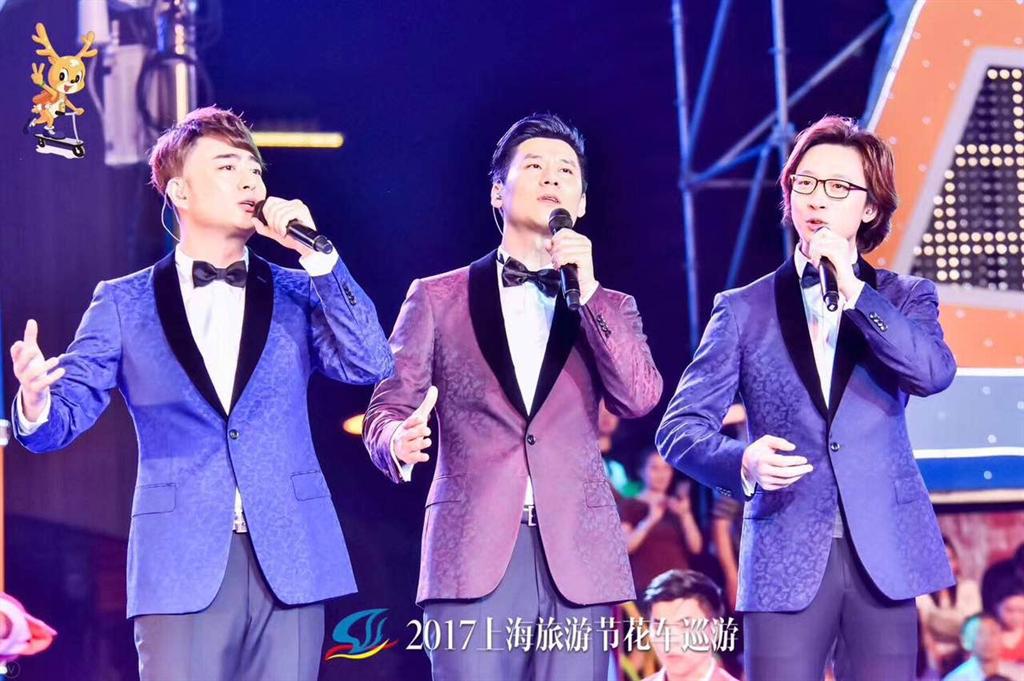 (图:“力量之声”组合在2017上海旅游节花车巡游活动上演唱《共同的节日》,左一为我校青年教师王志达)