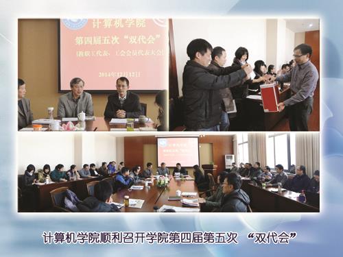 2014年12月12日下午,计算机学院第四届第五次“双代会”在学院大楼1106室顺利召开。会议由学院党委书记朱永华主持,学院常务副院长张武等学院领导参与列席,校工会常务副主席姜继平到会并祝贺。