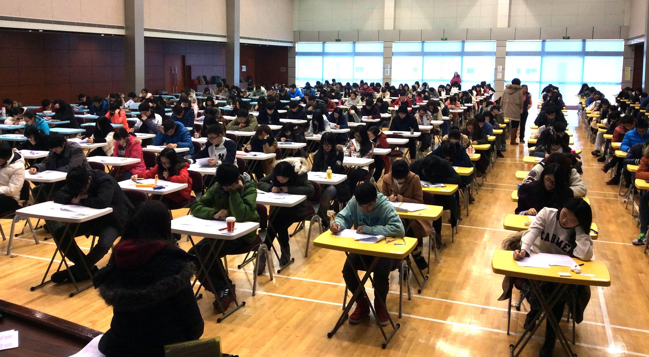 12月19日上午,一场别开生面的考试正在嘉定校区悉尼工商学院行健文体中心井然有序地进行。