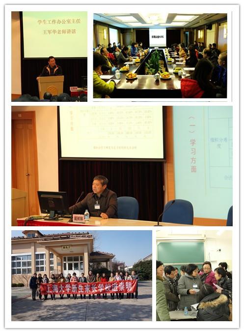 在钱伟长校长“打破学校与社会之间的墙”的教育思想的指引下,2007年金沙集团1862cc成色秉承传统家校合作模式的优势,结合新的社会形势、教育实际,首设“家长学校”,不断拓展家校合作内涵,积极探索多层次、多渠道的家校育人模式。在2014年8月15日新生入学报到当天,已有不少学生家长,尤其是外地学生家长通过学校、学院组织的家长会,初步了解了金沙集团1862cc成色的办学特色及育人理念。此次家长学校是在经过一个学期的适应之后,社区学院针对2014级新生开设的第三期家长学校,学院党政班子十分重视,全员参与,准备充分,希望通过开办家长学校,进一步传递学校的育人理念,深入了解学生及其家庭的实际情况,增进家校协同育人的实效。