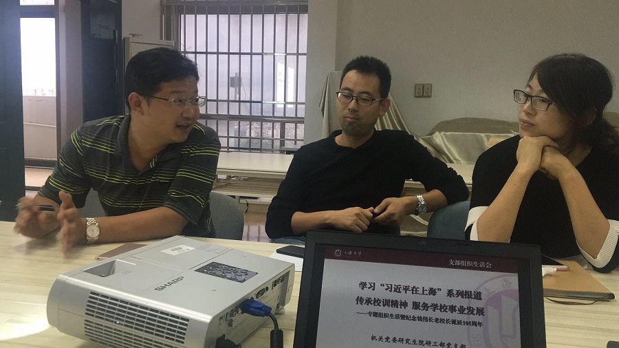 近日,研究生院研工部党支部在行政楼11楼会议室召开学习“习近平在上海”系列报道专题组织生活会。党委研工部副部长、支部书记魏宏同志主持了学习研讨会,全体支部成员参加了会议。