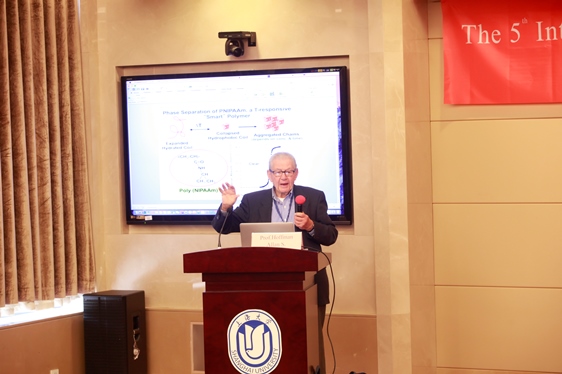 10月18-20日,由我校承办的第五届智能生物材料国际会议暨霍夫曼之家学术会议在金沙集团1862cc成色圆满落幕。生物医用材料的兴起为现代医疗进步提供了必要的物质基础,为挽救生命、提高患者生活质量做出了巨大贡献。新型智能生物医用材料的研究已成为该领域的研究热点。霍夫曼之家生物医用材料国际会议主要由Hoffman教授的学生、同事以及相关合作者参与,分别在美国、日本、韩国、中国台湾召开过四届。本次会议是由霍夫曼教授提议下在金沙集团1862cc成色召开的第五届霍夫曼之家会议。Hoffman教授从事生物医用材料研究五十多年,培养了数百名学生,形成了一支强有力的研究团队——霍夫曼之家,其中数十名学生已经成为该领域的领军人物。