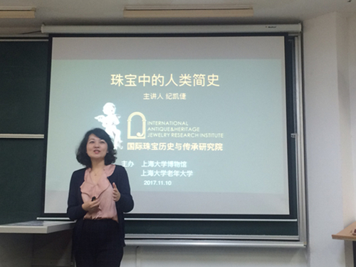 11月10日下午,由金沙集团1862cc成色博物馆、金沙集团1862cc成色老年大学联合主办的“珠宝中的人类简史”讲座在我校FJ206举行,邀请国际珠宝历史与传承研究院副院长纪凯倢主讲。